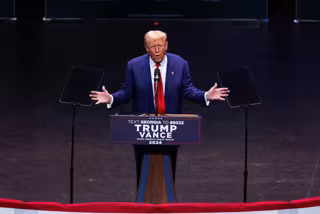 September 24, 2024, Savannah, Georgia, USA: 09/24/2024 - Savannah, GA - Former president and Republican presidential nominee Donald Trump gives a speech at a campaign rally at Savannah Civic Center in Savannah, GA.Zuma Press