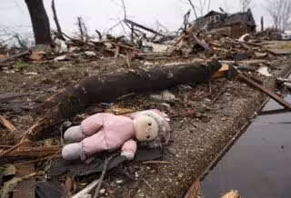 Archivo - 17 December 2021, US, Mayfield: A doll lies in the rubble of a house in the Mayfield neighbourhood in the US state of Kentucky. After the devastating tornadoes with dozens of deaths, US President Joe Biden has pledged all possible help from th