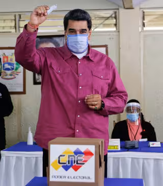 HANDOUT - 06 December 2020, Venezuela, Caracas: President of Venezuela Nicolas Maduro casts his vote into a ballot box inside a polling station during the 2020 Venezuelan parliamentary election. Maduro and his Socialist allies won just over 67 per cent, - Jhonander Gamarra/Prensa Miraflo / DPA - Archivo