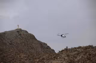 A helicopter of the U.S. Border patrol flies over the Sierra del Cristo Rey on t