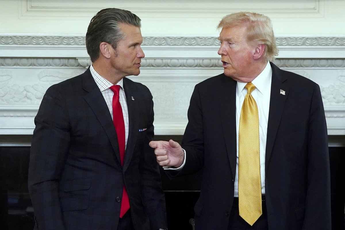 October 23, 2025, Washington, District Of Columbia, USA: United States President DONALD TRUMP (R) and US Secretary of War PETE HEGSETH (L) during a roundtable with the Homeland Security Task Force in the State Dining Room of the White House. - Europa Press/Contacto/Will Oliver - Pool via CNP