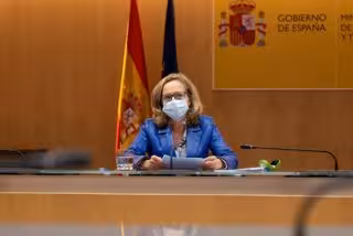 La vicepresidenta tercera y ministra de Asuntos Económicos y Transformación Digital, Nadia Calviño, en la reunión del Grupo de Coordinación y Seguimiento de Actuaciones del Segundo Dividendo Digital