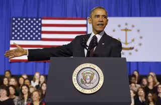 U.S. President Barack Obama speaks about the economy at Rhode Island College in
