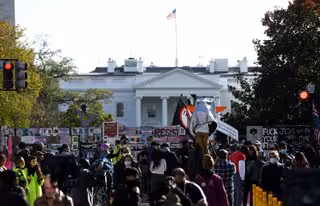 03 November 2020, US, Washington: Anti-Trump protesters gather outside the White House during while vote is still ongoing during the US Presidential election. Photo: Essdras M. Suarez/ZUMA Wire/dpa - Essdras M. Suarez/ZUMA Wire/dpa