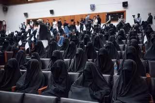 Un grupo de mujeres afganas asisten a un evento sobre educación en el Afganistán de los talibán.