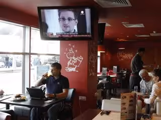Una pantalla de televisión muestra al ex contratista