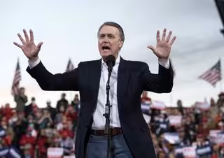 05 December 2020, US, Valdosta: US Senator David Perdue speaks to supporters during a Georgia Victory Rally, two Republican incumbent US senators Kelly Loeffler and David Perdue will face democratic challengers in the special run run-off election. Photo