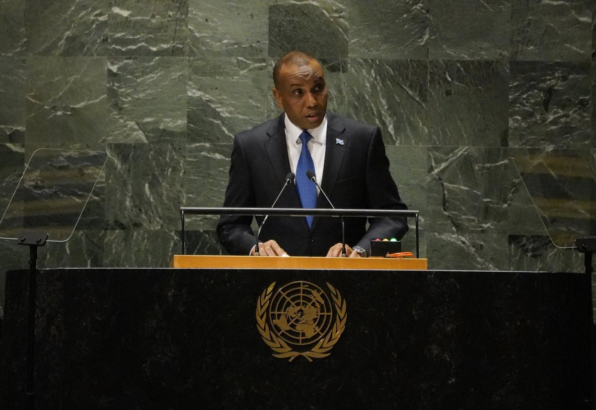 Archivo - UNITED NATIONS, Sept. 24, 2023 -- Hamza Abdi Barre, prime minister of Somalia, delivers a speech at the General Debate of the 78th session of the UN General Assembly at the UN headquarters in New York, Sept. 23, 2023. During the 78th session - Europa Press/Contacto/Wu Xiaoling - Archivo