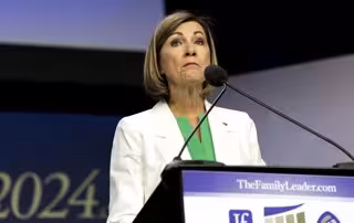 July 14, 2023 - Des Moines, Iowa, USA -  Iowa Governor KIM REYNOLDS addresses the 2023 FAMiLY Leadership Summit prior to signing a bill banning all abortion in Iowa after six weeks, a time when many women don't even know they're pregnant.  The annual su
