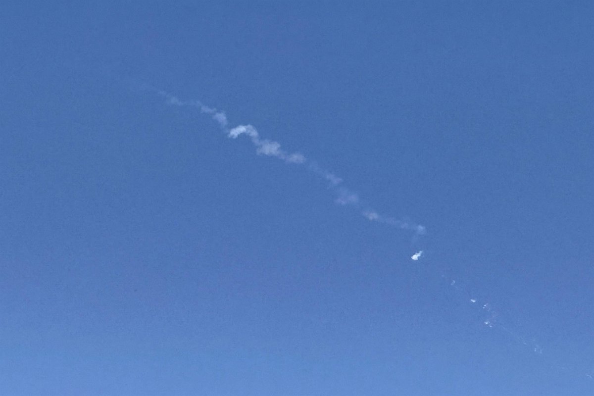 28 February 2026, Israel, ---: A trail of smoke is seen in the sky over Israel following the interception of an Iranian missile. Photo: Ivan Batyrev/TASS via ZUMA Press/dpa - Ivan Batyrev/TASS via ZUMA Press / DPA