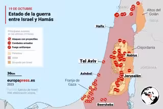 Mapa con el estado de la guerra entre Israel y Hamás el 19 de octubre de 2023. Israel entró en guerra con Hamás tras el ataque lanzado contra el país el 7 de octubre - Europa Press