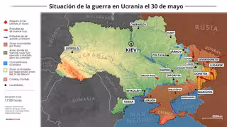 Mapa con la situación de la guerra en Ucrania el 30 de mayo de 2022 (Estado a las 17:00 horas). El Ministerio de Defensa ucraniano ha reconocido este lunes que las hostilidades en el este del país, donde se ha recrudecido la ofensiva rusa en las últimas
