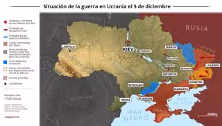 Mapa con la situación de la guerra en Ucrania el 5 de diciembre (Estado a las 17:00 horas). Las Fuerzas Armadas de Rusia han lanzado este lunes una nueva ola de ataques sobre varias regiones de Ucrania, con una batería de misiles que han dejado al menos - Europa Press
