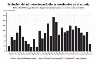 El siguiente gráfico acompaña a la noticia titulada: La FIP cifra en 49 los periodistas asesinados en 2019, la cifra más baja en dos décadas