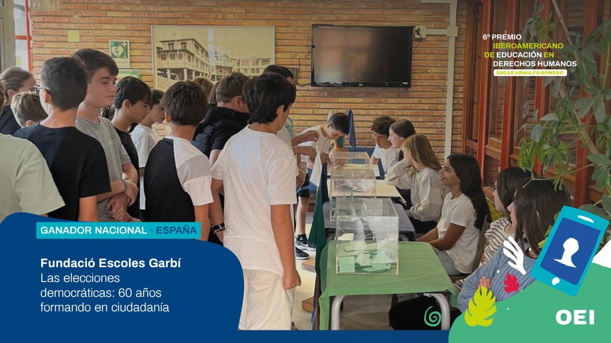 La Organización de Estados Iberoamericanos para la Educación, la Ciencia y la Cultura (OEI) ha reconocido a la Fundación Escoles Garbí como ganadora de la fase nacional española del VI Premio Iberoamericano de Educación en Derechos Humanos ‘Óscar Arnulfo Romero’, con su proyecto “Las elecciones democráticas: 60 años formando en ciudadanía activa”.