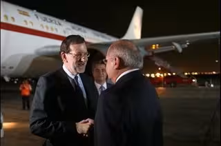 Rajoy fue recibido en el aeropuerto por el ministro peruano de Defensa, Pedro Cateriano, y por el embajador de España en Perú, Juan Carlos Sánchez.