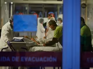 Personal sanitario del Hospital de Navarra en el Servicio de Urgencias atiende a un paciente en camilla