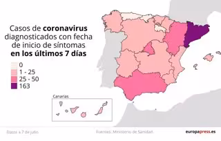 A las 17 horas de este miércoles 8 de julio, la radiografía de los rebrotes en España por Comunidades Autónomas es la siguiente: