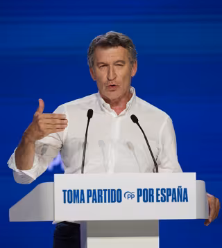 Delante del expresidente José María Aznar, sentado en primera fila, Feijóo ha apostado por la centralidad política asegurando que "las respuestas más efectivas y más justas llegan desde el centro reformista" que el PP ya acuño en los años 90 con José María Aznar.
