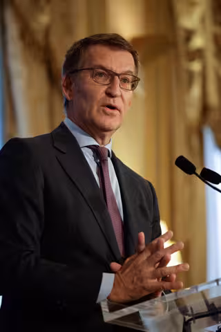 El presidente del PP, Alberto Núñez Feijóo, ofrece una conferencia en el Hotel Palace de Barcelona, a 25 de octubre de 2023, en Barcelona, Catalunya (España). Feijóo ha viajado hasta Barcelona para explicar el "modelo autonomista" del PP que atiende a l - Kike Rincón - Europa Press