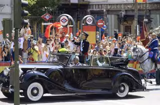 De hecho, sólo el principio y el final del recorrido han estado abarrotados. En la Carrera de San Jerónimo había ya personas a las siete de esta mañana para tener un buen sitio desde el que ver a los nuevos Reyes. Entre ellos, una pareja que ya asistió al cortejo tras la boda de Don Felipe y Doña Leitizia, entonces bajo la lluvia y en coche cubierto.