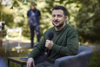 April 12, 2024, Chernivtsi, Chernivtsi Oblast, Ukraine: Ukrainian President Volodymyr Zelenskyy listens to a question during a town hall meeting with students on the "Future of Ukraine and the Marshall Plan Analogy,", April 12, 2023 in Chernivtsi, Cherniv - Europa Press/Contacto/Handout/Ukrainian Presidenti