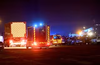 24 November 2021, France, Calais: Fire brigade vehicles arrive at Calais port after at least 27 migrants died when their boat sank off the coast of Calais. Photo: Francois Lo Presti/AFP/dpa