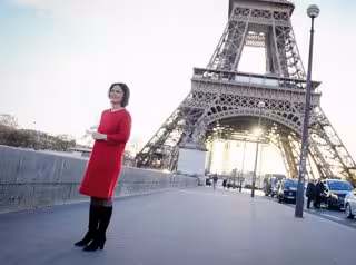 09 December 2021, France, Paris: Annalena Baerbock, German Foreign Minister, stands in front of the Eiffel Tower after a meeting with her French counterpart Jean-Yves Le Drian. Photo: Kay Nietfeld/dpa