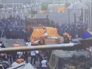 Efectivos de las fuerzas de seguridad de Venezuela han impedido el paso al primer camión de ayuda humanitaria estadounidense que ha llegado al Puente Internacional Simón Bolívar.