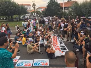 Tras las declaraciones a los medios informativos, algunos de los congregados han decidido permanecer en el lugar, sentados ante el cordón policial que les ha impedido el paso hasta Biarritz. A las 14.00 horas no se había registrado ningún incidente.