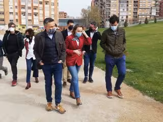 Cuca Gamarra pasea con miembros del PP de Logroño por el Parque Felipe VI de la capital riojana