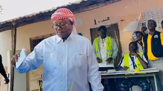 BISSAU, Nov. 24, 2025 -- This photo taken with a mobile phone shows Guinea-Bissau's President Umaro Sissoco Embalo voting at a polling station in Gabu Region, Guinea-Bissau, Nov. 23, 2025. Guinea-Bissau on Sunday launched its presidential and legislative - Europa Press/Contacto/Aliu Cande