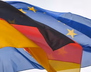 Archivo - 15 May 2019, Brandenburg, Frankfurt: The national flag of Germany (L) and the flag of the European Union flap next to each other. Photo: Patrick Pleul/dpa-Zentralbild/ZB