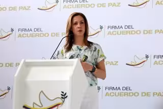 "Esto no es un show, es para cerrar la guerra y abrir las puertas a la paz", manifestó la ministra ante la pregunta de los medios de comunicación que asisten a la cobertura del evento.