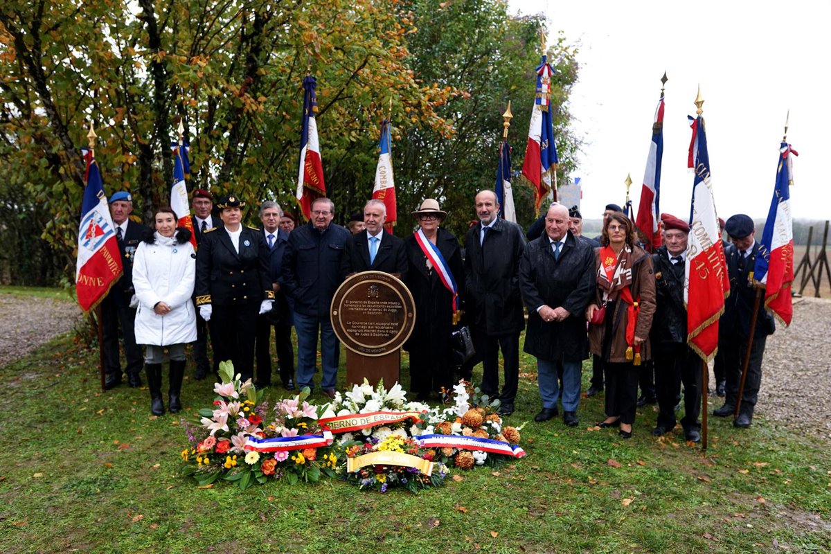 Después de participar en la ofrenda floral a la tumba de Azaña, Torres ha desvelado la placa que reconoce el que fuera campo de Sepfonds, conocido en su momento como Camp de Judes, como Lugar de Memoria Democrática.