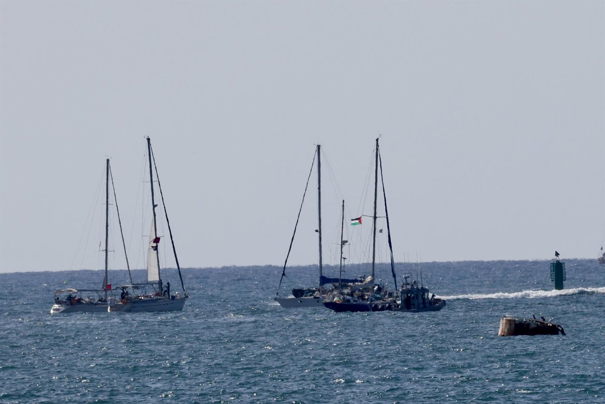 ASHDOD, Oct. 3, 2025 -- Vessels of the Gaza-bound Global Sumud Flotilla (GSF) are tugged towards the port of Ashdod in southern Israel on Oct. 2, 2025. The Israeli navy intercepted the last vessel of the Gaza-bound Global Sumud Flotilla (GSF) in the Me - Europa Press/Contacto/Jamal Awad