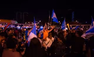 August 21, 2023, Guatemala City, Guatemala City, Guatemala: Citizens take to the streets to celebrate the triumph of BERNARDO AREVALO as the new president in the Guatemalan elections.,Image: 798913704, License: Rights-managed, Restrictions: , Model Rele