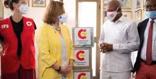 Asimismo, y para reforzar la cooperación española, la secretaria de Estado de Asuntos Exteriores y para Iberoamérica y el Caribe, Cristina Gallach, ha hecho entrega hoy de un cargamento de material humanitario español en su viaje oficial a Conakry.