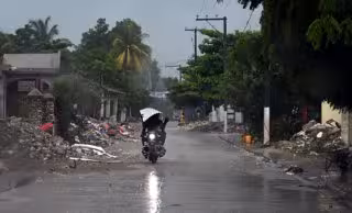 Archivo - Una persona conduciendo una moto en una calle de Haití.