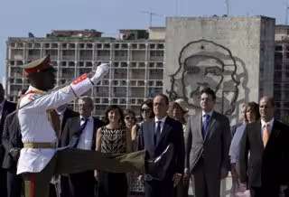 French President Francois Hollande ttends a wreath laying ceremony to Cuba's ind