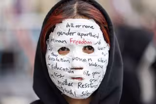 Archivo - 08 March 2023, Berlin: A masked woman takes part in a demonstration by Afghan women's and diaspora groups against the Taliban in Afghanistan and to demand more rights and self-determination for women in their country. Photo: Gerald Matzka/dpa