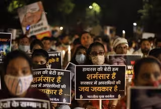 Protestas en Nueva Delhi por el asesinato y la cremación forzada de una niña de 9 años, que se sospecha pudo haber sido violada.