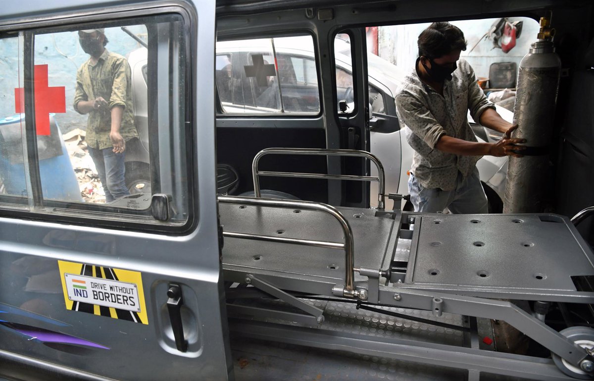 Archivo - May 28, 2021, Bengaluru, Karnataka, India: A mechanic fixes an oxygen cylinder in a car that is being converted into an ambulance with an oxygen cylinder in Bengaluru..An initiative by ''Drive Without Borders'' spearheaded by Wasim Memon to help - Europa Press/Contacto/Meghana Sastry - Archivo