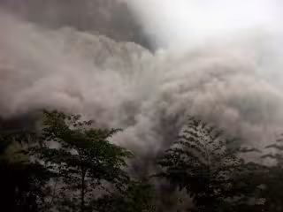 Nube de humo y ceniza tras la erupción del volcán Semeru