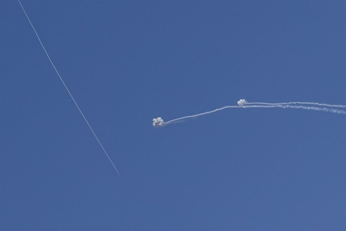 Archivo - November 6, 2024, Central District, Israel: A barrage of some 10 rockets from Lebanon's Hezbollah is intercepted in the airspace above central Israel and Tel Aviv's Ben Gurion International Airport are photographed from a sheltered lying down po - Europa Press/Contacto/Nir Alon - Archivo