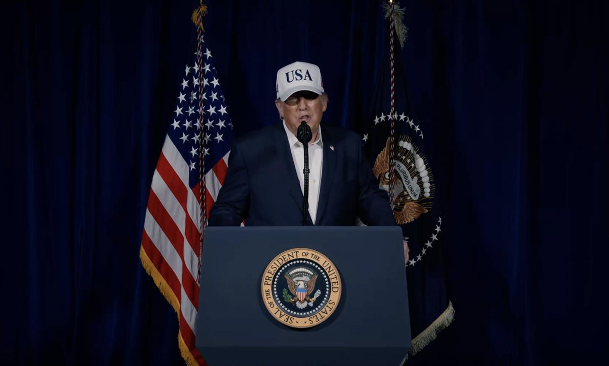 February 28, 2026, Washington, District Of Columbia, USA: Frame grab from an eight minute statement made by United States President Donald J Trump that was released via his X account concerning the United States attack on Iran, on Saturday, February 28, 2