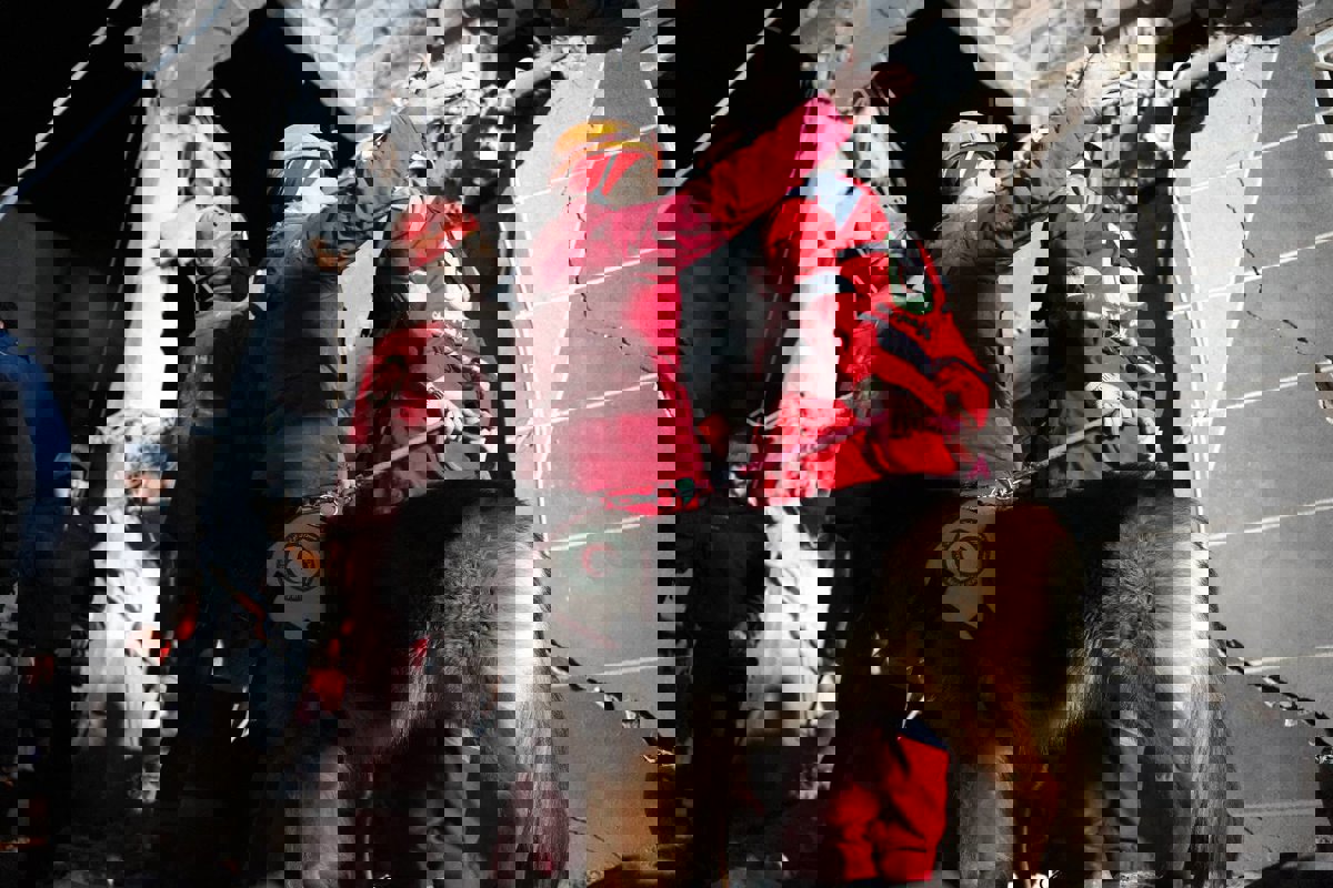 March 25, 2026, Iran, Iran: Rescue teams from the Iranian Red Crescent Society (IRCS) are working at the site of a building destroyed by an airstrike. Iran said it fired cruise missiles at the USS Abraham Lincoln aircraft carrier, according to a statement - Europa Press/Contacto/Ircs