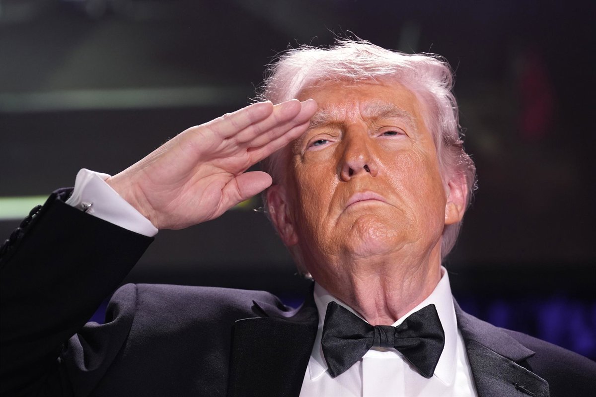 April 25, 2026, Washington, District of Columbia, USA: U.S. President DONALD TRUMP, 79, salutes at beginning of the 2026 White House Correspondents Association annual black tie formal dinner in Washington, at Washington Hilton hotel on Saturday where roug - Europa Press/Contacto/Yuri Gripas/POOL