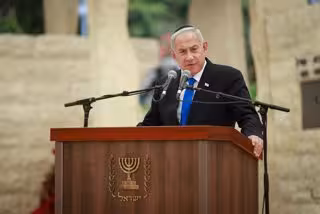 Archivo - JERUSALEM, April 25, 2023 -- Israeli Prime Minister Benjamin Netanyahu speaks at a memorial ceremony on Israel's Memorial Day for fallen soldiers and terror victims at Mount Herzl, where the country's main military cemetery is located, in Jer - Europa Press/Contacto/Erik Marmor/JINI - Archivo