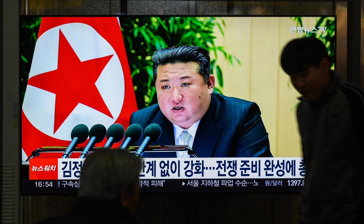 Archivo - El lider de Corea del Norte, Kim Jong Un, durante un acto oficial retransmitido a través de una pantalla de televisión en una estación de tren de Corea del Sur (archivo) - Europa Press/Contacto/Kim Jae-Hwan - Archivo